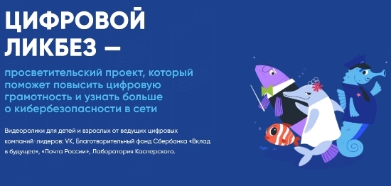 «Цифровой ликбез» учит школьников цифровой грамотности и правилам поведения в Интернете. В материалах проекта рассказывается как распознать фишинговую ссылку, защитить личную информацию в сети или как противостоять кибербуллингу. На сайте «Цифрового ликбеза» подростки познакомятся с новыми героями – жителями подводного мира и придуманного города Нижнефорельска – рыбкой-блогером Антоном Корюшкиным, нерпой Женей, крабом Кирой и другими морскими жителями.