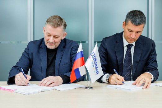 На фото: генеральный директор ПАО ТКЗ «Красный котельщик» Александр Тараканов и вице-президент ГК «ТЯЖМАШ» Игорь Махмутов подписывают знаковый контракт