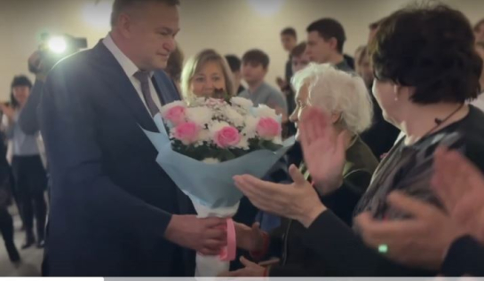 Под аплодисменты зала глава Сызрани вручил Любови Загудаевой букет цветов - видео
