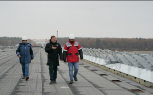 В ходе осмотра строительства объекта представители подрядных организаций доложили губернатору о том, какие работы завершены и какие выполняются в настоящее время.