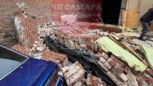 В Самаре на Молодогвардейской кирпичная стена дома обвалилась на припаркованный во дворе автомобиль