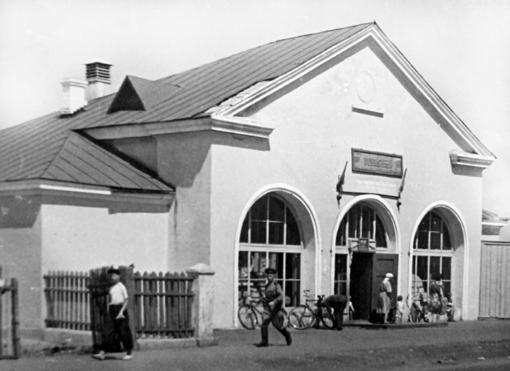 Ставрополь-на-Волге. Здание магазина. 1959 год. Жирность и градусыАнтонина Фроловна вспоминает, что в начале 50-х годов прошлого века город существовал в виде нескольких разрозненных поселков: Портового, Шлюзового, Комсомольского и Соцгорода, последний постепенно прирастал новыми кварталами. Население Ставрополя составляло 12 тыс. человек.