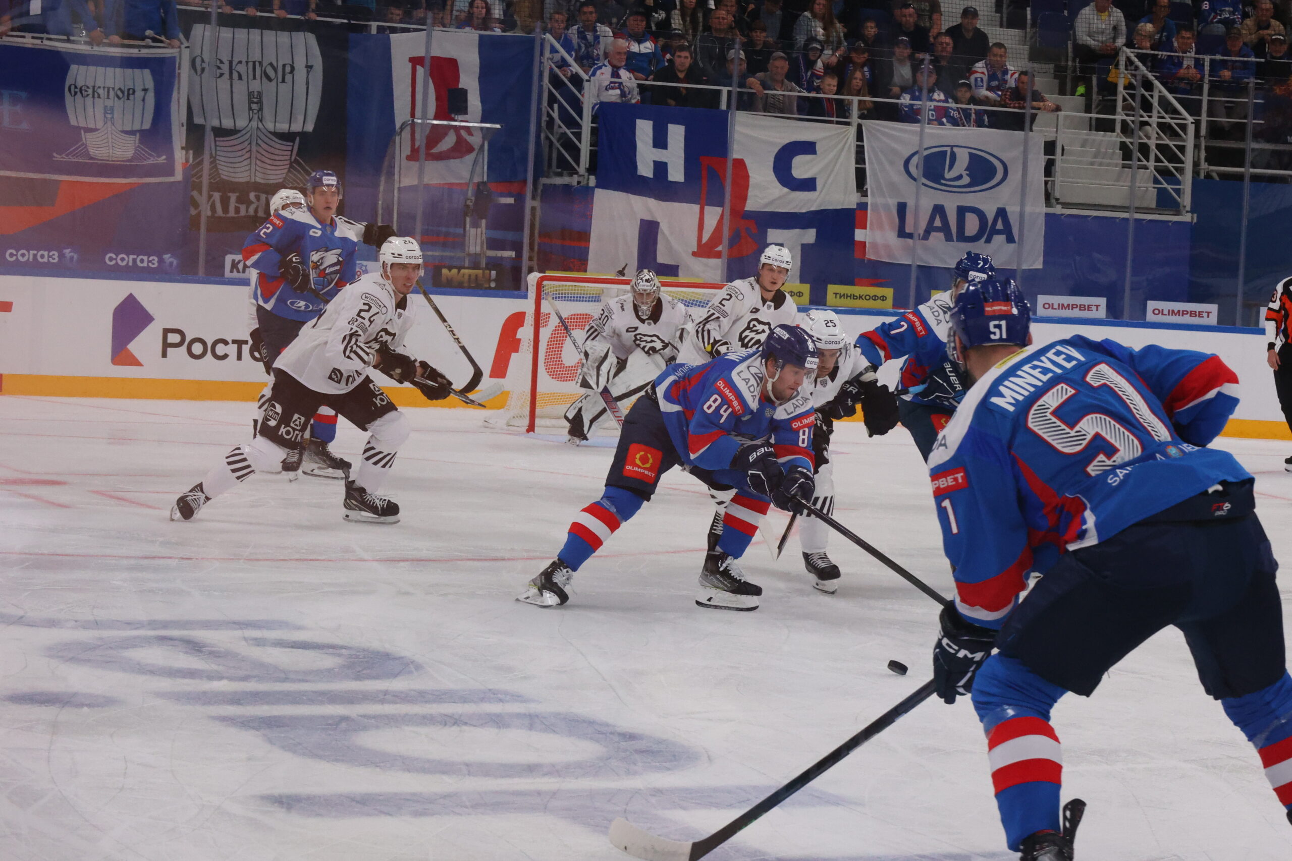В субботу, 2 сентября, хоккейный клуб «Лада» стартовал в новом сезоне Фонбет Континентальной хоккейной лиги. На своей домашней площадке тольяттинцы принимали челябинский «Трактор». Первый матч вызвал ажиотаж среди поклонников хоккея – еще в начале недели все билеты были проданы. Игроков и болельщиков поприветствовал Губернатор Самарской области Дмитрий Азаров .