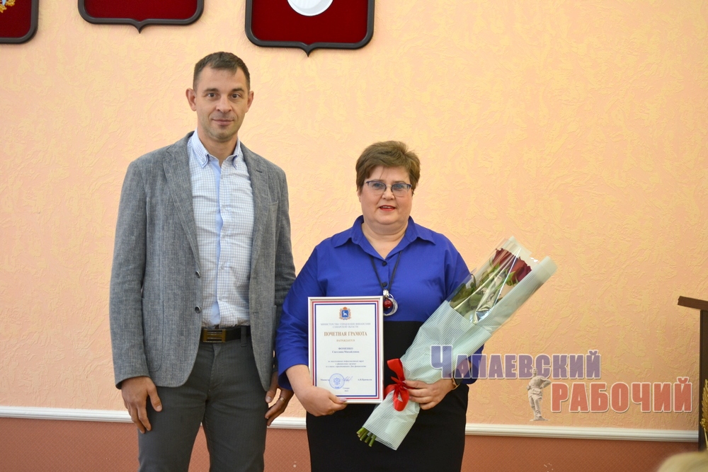Конец прошлой недели ознаменовался приятным событием: в конференц-зале администрации чествовали заместителя руководителя финансового управления Светлану Фоменко. Глава Чапаевска Александр Кузнецов передал виновнице торжества почетную грамоту профильного министра за многолетний добросовестный труд и в связи с празднованием Дня финансиста.