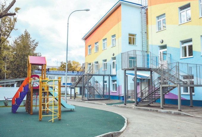 Территория детского сада оборудована групповыми игровыми комплексами и физкультурной площадкой с мягким безопасным покрытием и спортивным оборудованием. Обновились и хозяйственные блоки. На первом этаже расположились прачечная комната, медицинские кабинеты и современно оборудованный пищеблок, отвечающий всем санитарным нормам и требованиям.