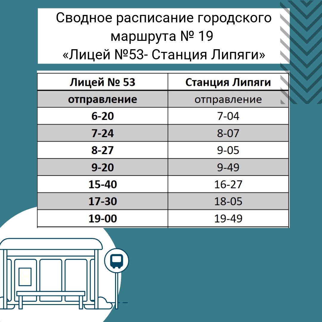 С 7 по 30 сентября вновь от станции Липяги до остановки "Лицей № 53" будет курсировать муниципальный автобусный маршрут № 19.