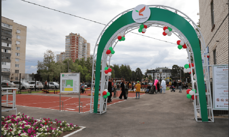 Инклюзивная площадка (или инклюзивный парк) состоит из двух частей: спортивная зона, состоящая из двух территорий (первая — для детей с ограниченными возможностями здоровья от 7 лет и старше, вторая – для детей дошкольного возраста), плюс прогулочная площадка. На территории имеются и обычные качели, детский городок, поэтому площадка доступна для всех желающих.