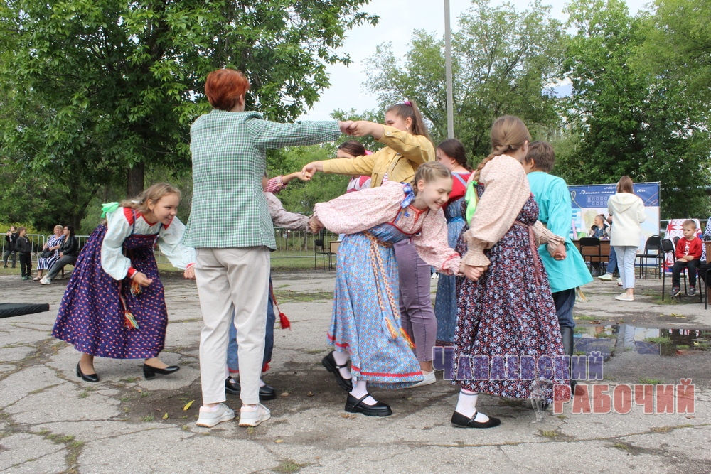 Нашлось место и развлечениям. На площадке «Богатырский триатлон» проходили соревнования для семей. Отнять у соперника шапку в честном бою, перетянуть канат, построить крепость из кубиков — русский дух чувствовался даже в испытаниях для маленьких витязей. А волонтеры Победы провели квест-игру «Три главных цвета Родины моей». На станциях добровольцы предлагали всем желающим пройти ряд заданий: раскрасить герб, найти народные приметы, определить блюда национальной кухни по картинкам…