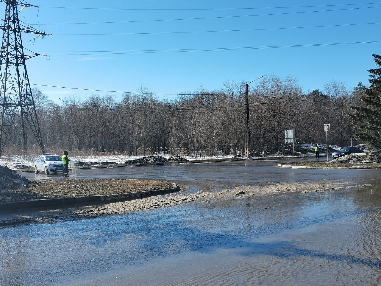 «Подтопление в районе «Аэрохолла» связано с подпором воды из озера-ливнеприемника, расположенного в лесу за ул. Баныкина. Это, действительно, непростая ситуация. Земля сильно промерзла, озеро было переполнено, поэтому, когда снег начал активно таять, вода под напором вышла по системе ливневой канализации на проезжую часть», — объяснил Дроботов.