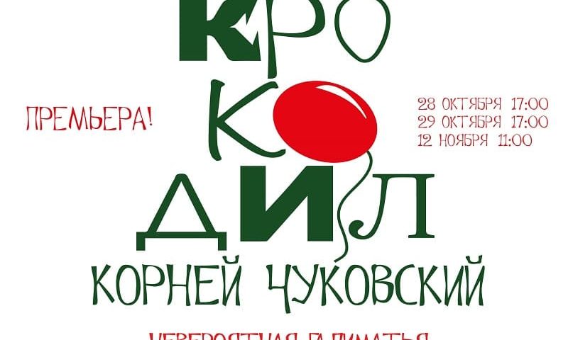Премьерные показы спектакля «Крокодил» по сказке Корнея Ивановича Чуковского состоятся 28 и 29 октября. Премьера.