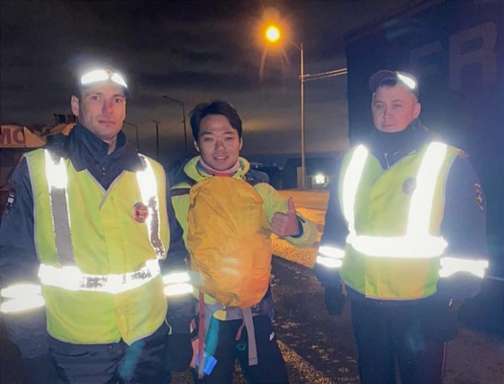 Сотрудники ДПС ГИБДД ОМВД России по Ставропольскому району младший лейтенант полиции Рустам Шафеев и лейтенант полиции Никита Теличко помогли китайскому путешественнику Джону и попросили его сообщить когда он доберется до Казани, чтобы убедиться, что у него все в порядке.