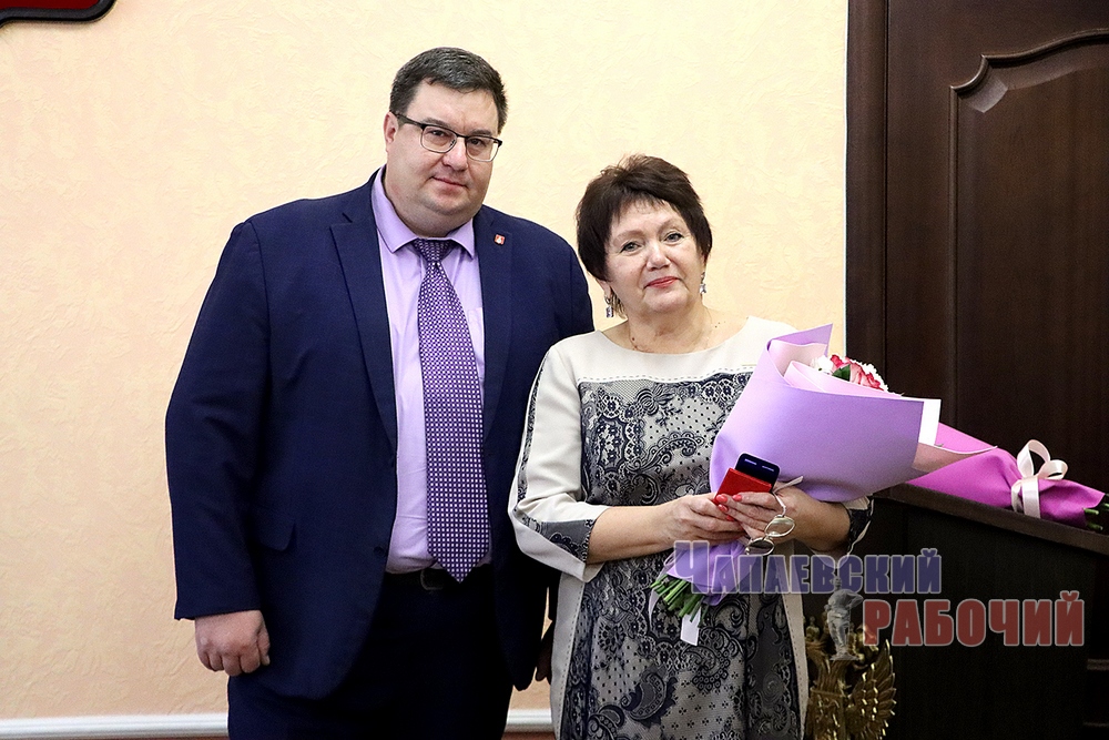 К поздравлениям присоединился председатель депутатского корпуса Александр Шамьянов. Вручая юбилярше почетный знак Думы г. о. Чапаевск «За заслуги перед городским сообществом», он подчеркнул: