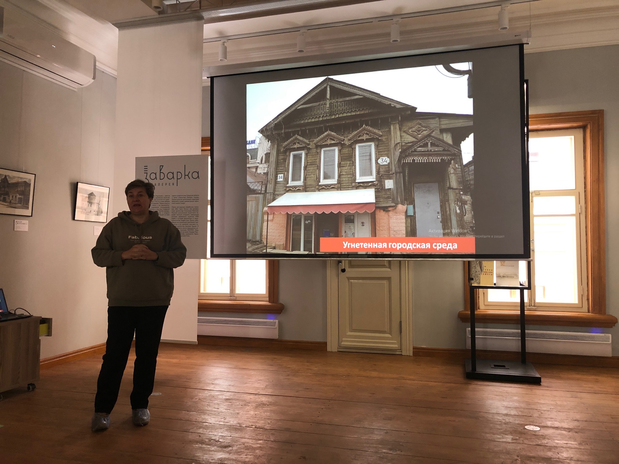 Первый этаж — кирпичный. Кладка там сохранилась, но есть необходимость в реставрации окон. Команда фестиваля объявила сбор средств — нужно 480 тысяч рублей для открытия собственной мастерской, поскольку делать рамы на заказ очень дорого.