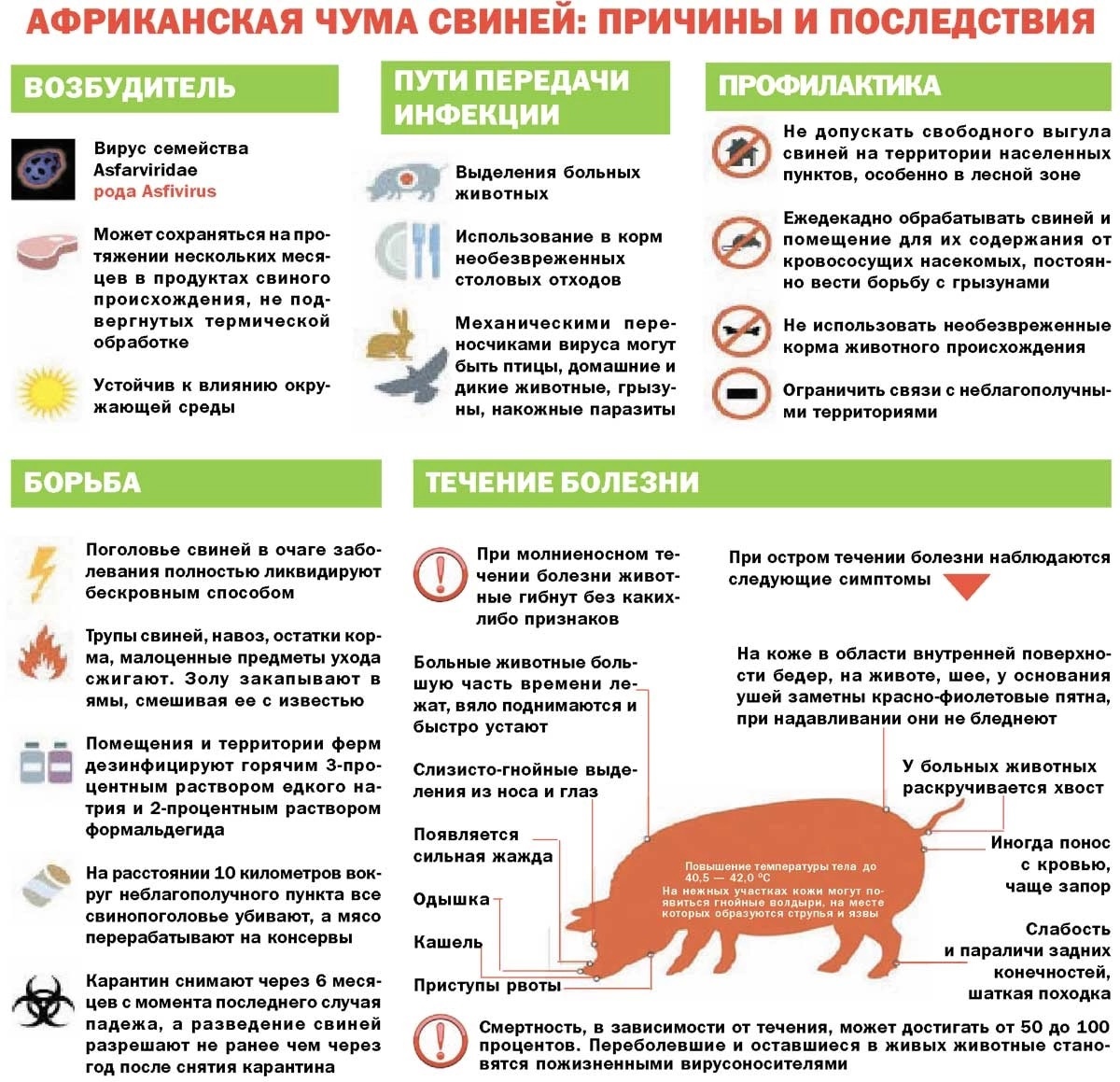АЧС не представляет опасности для человека, но смертность восприимчивых животных достигает 100%!