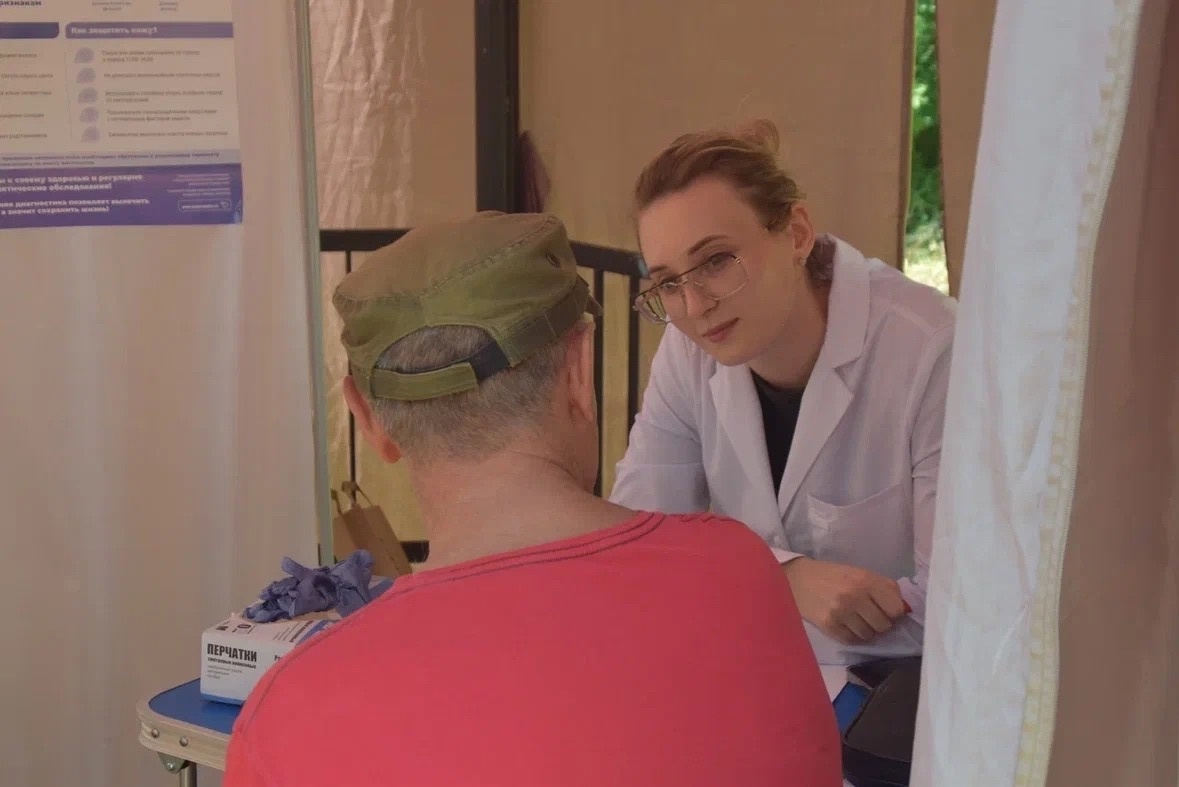 Жители посетили «Палатку здоровья», где прошли осмотр и получили консультацию врача-онколога областного онкодиспансера. Специалисты рассказали участникам акции о факторах развития злокачественных новообразований кожи, методах самообследования и мерах профилактики, которые помогут сократить риск развития рака кожи.