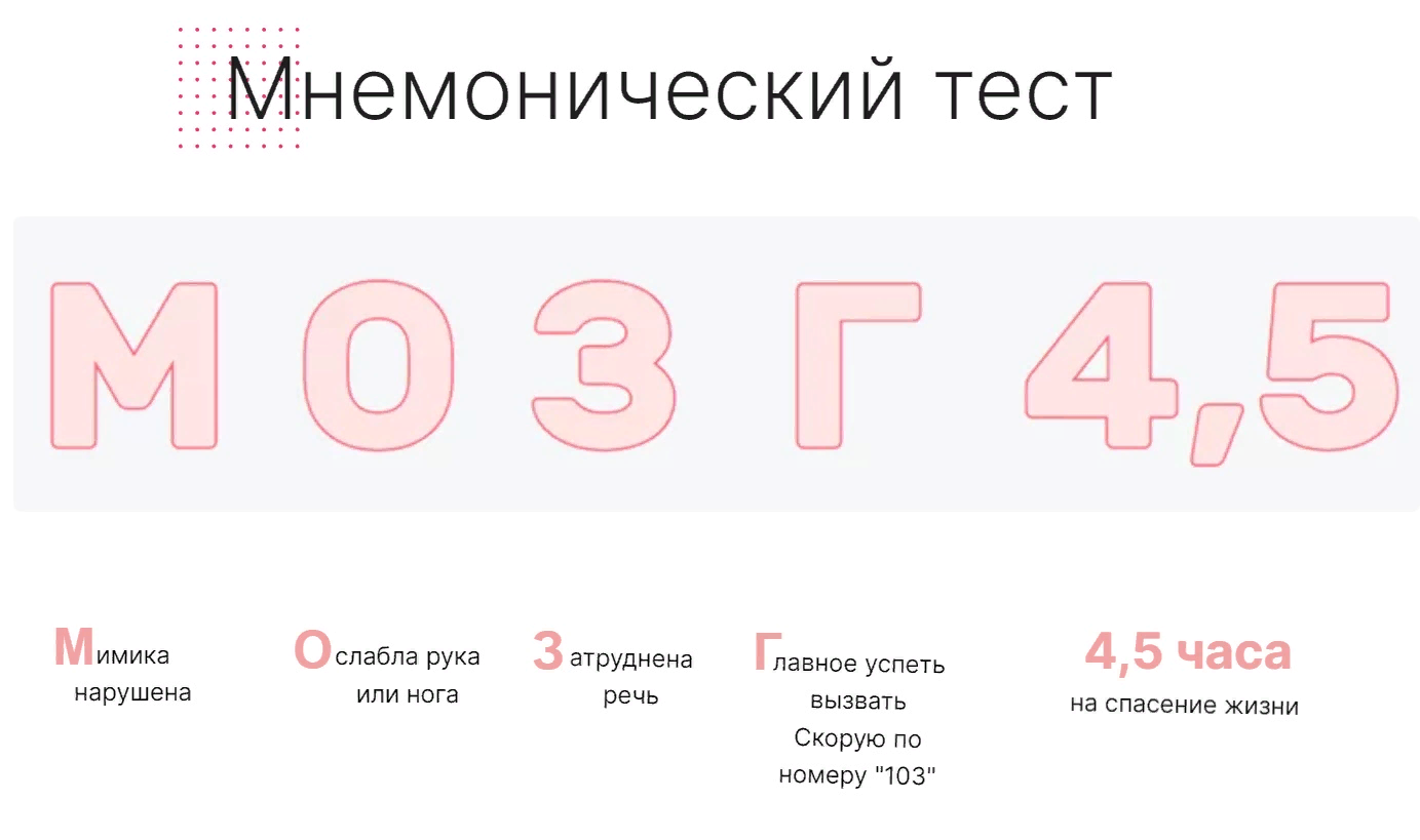 АНО «ИНФОЗОЖ» запустил проект «М.О.З.Г. 4,5». С помощью разработанного мнемонического теста программа объясняет, как распознать инсульт и что делать, если он уже случился.