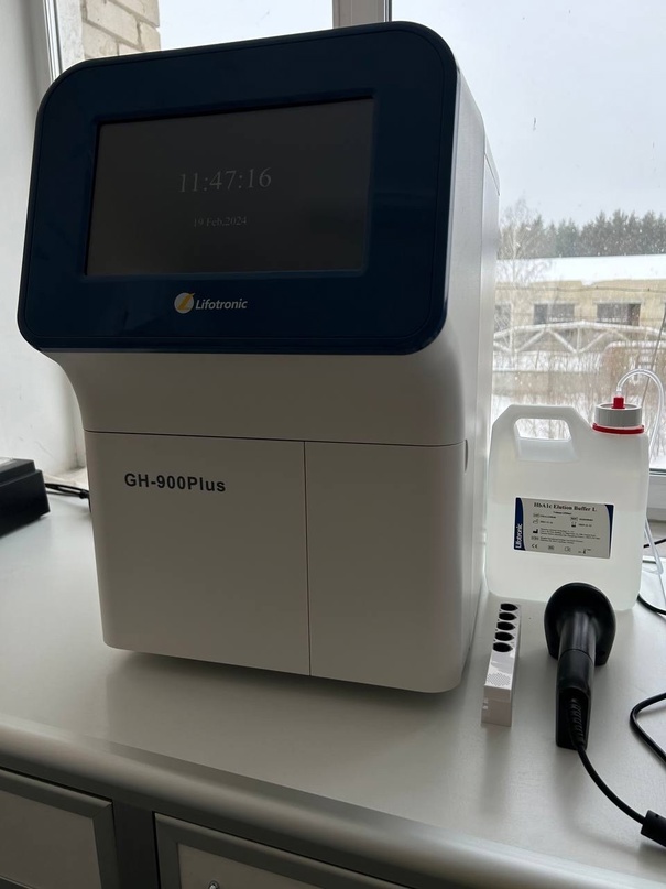 В лаборатории Сызранской ЦГРБ в рамках оснащения медицинским оборудованием, лекарственными препаратами, средствами индивидуальной защиты государственных бюджетных учреждений здравоохранения Самарской области, в том числе осуществляющих наблюдение и лечение пациентов в соответствии с актуальной версией методических рекомендаций «Профилактика, диагностика и лечение новой коронавирусной инфекции (COVID-19)» (подозрительный, вероятный, подтвержденный случаи COVID-19) инсталлировано новое оборудование Анализатор гликированного гемоглобина Lifoteonic GH-900Plus.