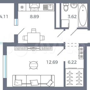 Отделка: по умолчанию предчистовая – все пыльные и шумные работы уже будут сделаны за вас. По желанию Вы можете выбрать готовый ремонт от застройщика (только в случае, если до сдачи дома осталось не менее 6 месяцев).