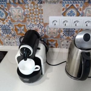 Квартира оснащена всём, что может понадобиться для жизни как на сутки, так и на более долгий срок (ЖК телевизор, кондиционер, СВЧ-печь, холодильник, чайник, капсульная кофеварка DЕLОNGНI Nеsрrеssо, необходимая посуда и кухонные принадлежности, стиральная машина, утюг). Бесплатный Wi-Fi и телевидение. Во дворе парковка.