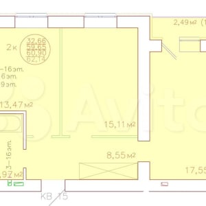 - Общая площадь: 60.9 м²